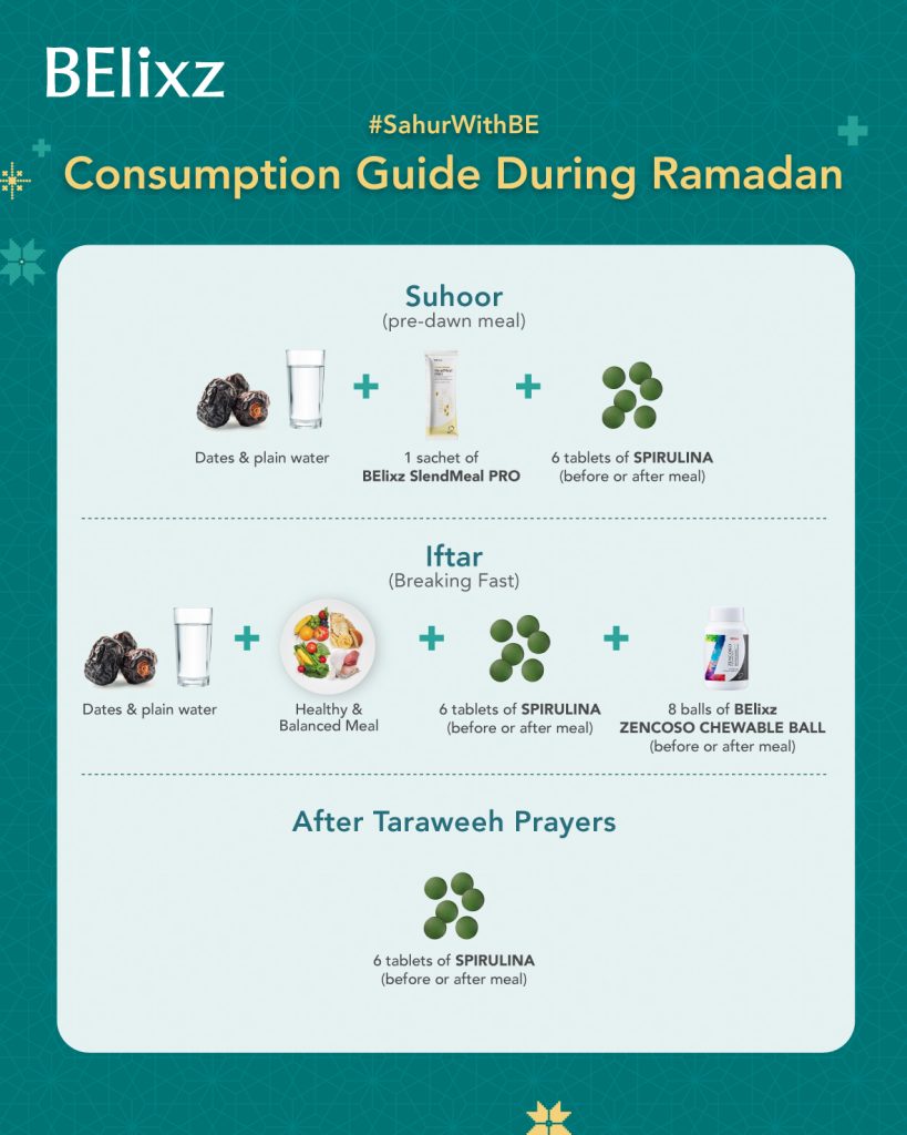 Enjoy BElixz SlendMeal PRO, SPIRULINA, and BElixz ZENCOSO CHEWABLE BALL the smart way this Ramadan.