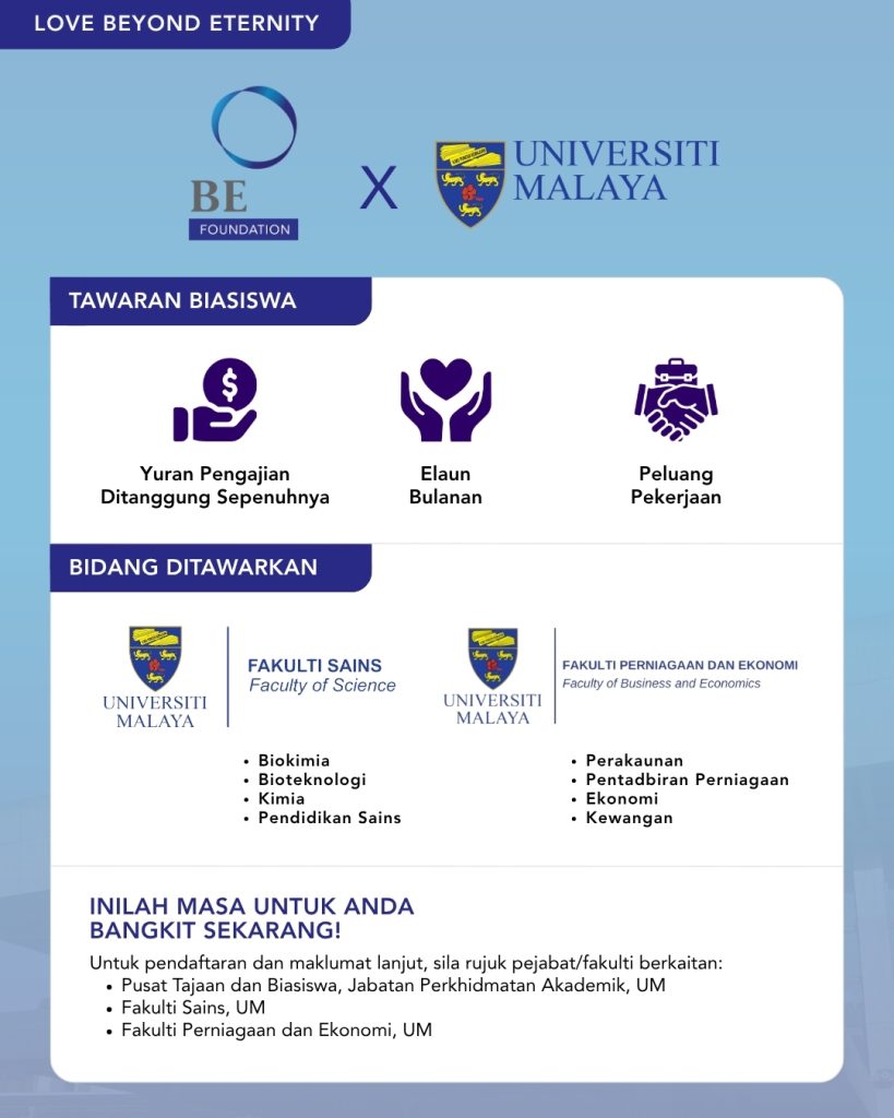 Melalui kerjasama bersama Universiti Malaya (UM), biasiswa ini diperkukuh dengan asas akademik yang diyakini dan dihormati. Ia bukan sekadar gabungan dua pihak, tetapi satu usaha bersama untuk membentuk generasi profesional yang mampu berdiri di pentas global.