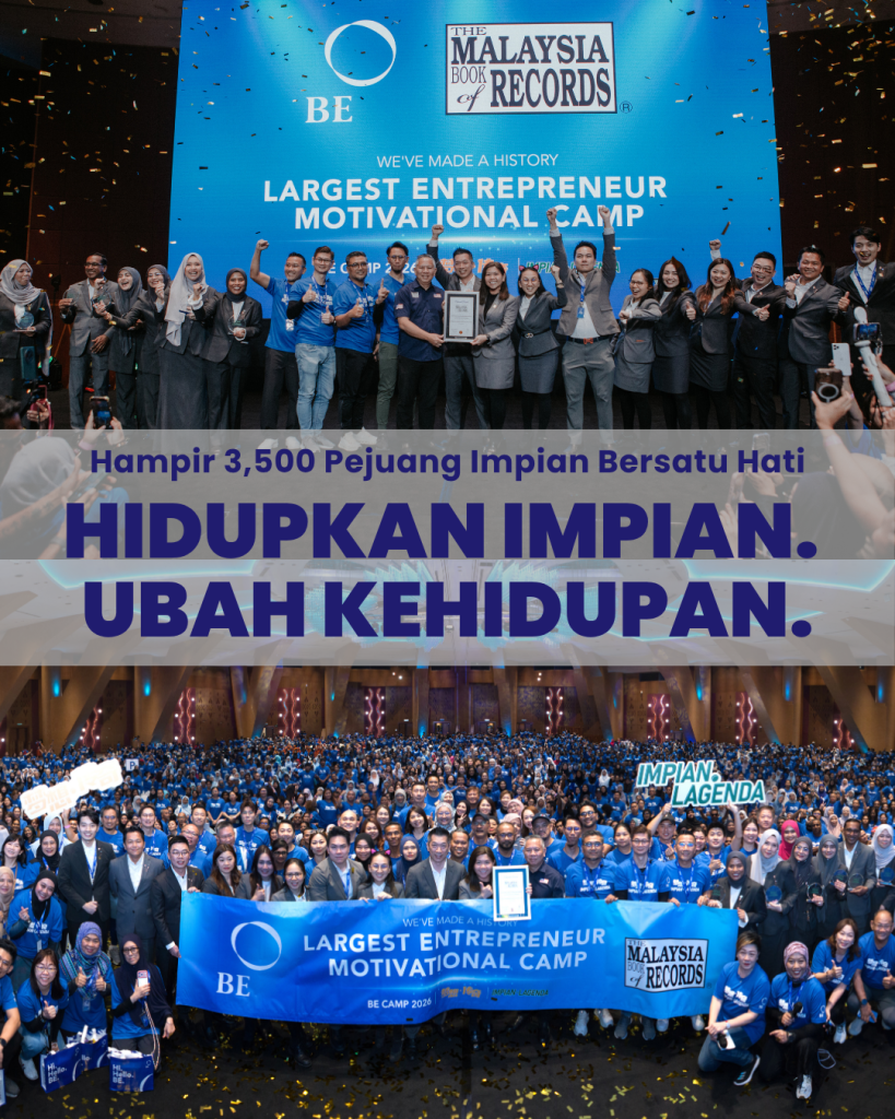 Kami secara rasmi memecah rekod Malaysia Book of Records sebagai Kem Motivasi Usahawan Terbesar dalam sejarah. Sebagai syarikat pertama dalam industri yang menerima pengiktirafan ini, ia membuktikan keutuhan platform BE serta kepercayaan tinggi daripada komuniti.