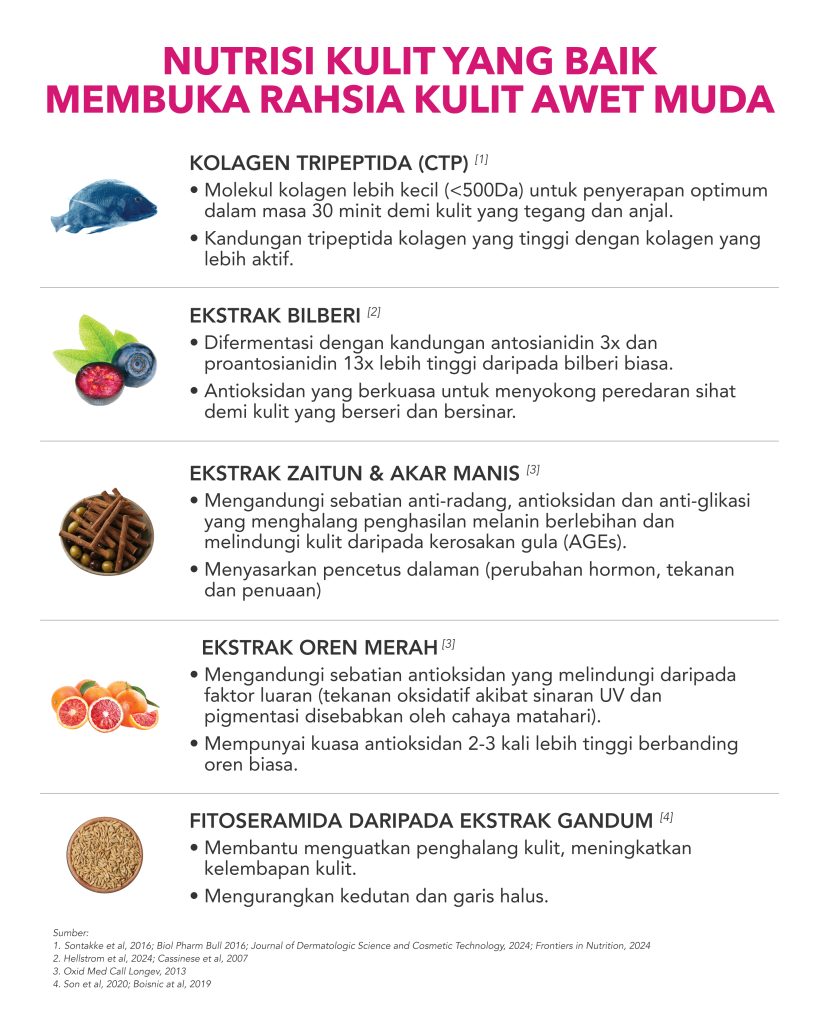 Minuman kolagen inovatif yang dirumus dengan Kolagen Tripeptida termaju dan berpaten, digabungkan dengan antioksidan berkhasiat (campuran ekstrak botani) untuk memberikan manfaat kulit yang menyeluruh. BElixz COLLAGEN PLUS membantu menjadikan kulit lebih tegang dan anjal, menyerlahkan seri semula jadi, serta mengekalkan kulit yang licin dan tampak sempurna. Mudah diamalkan setiap hari, ia menyuburkan kulit dari dalam bagi menyerlahkan kulit yang sihat dan awet muda.