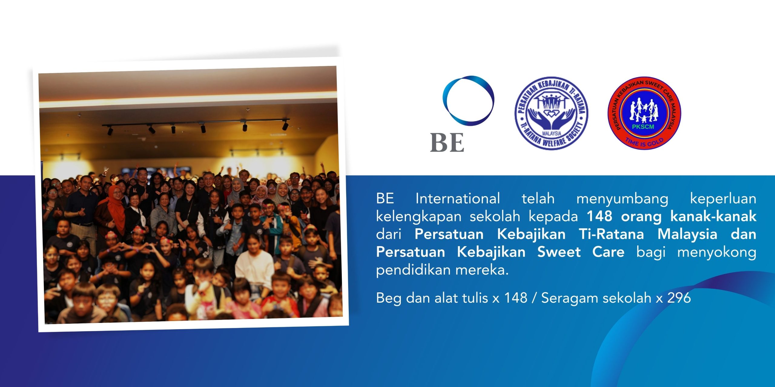Kami akan terus memberikan bantuan ekonomi kepada 100 kanak-kanak dari Vietnam dan Myanmar dalam tempoh tiga tahun akan datang. Program anak-anak tajaan BE kali ini adalah kesinambungan daripada program tajaan kanak-kanak yang bermula pada tahun 2018.